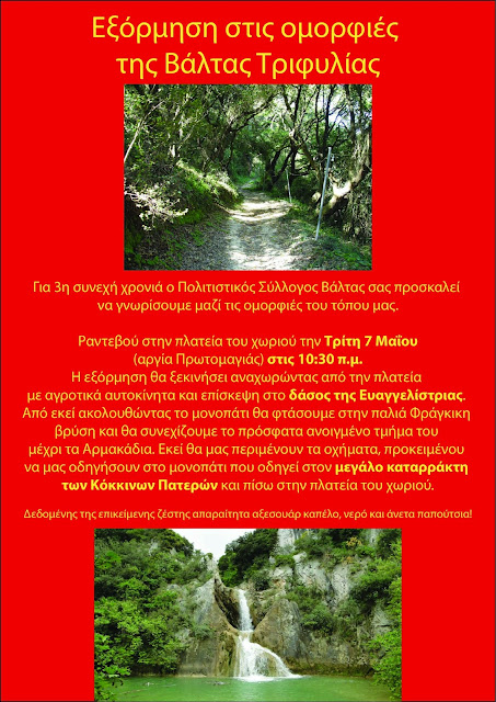 7 Μαΐου: Εξόρμηση στις ομορφιές της Βάλτας Τριφυλίας